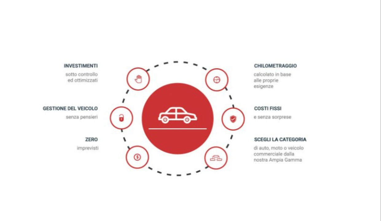 Con il pagamento di un canone fisso mensile, per un periodo che va dai 24 ai 60 mesi e un piccolo anticipo ove richiesto, potrai avere: